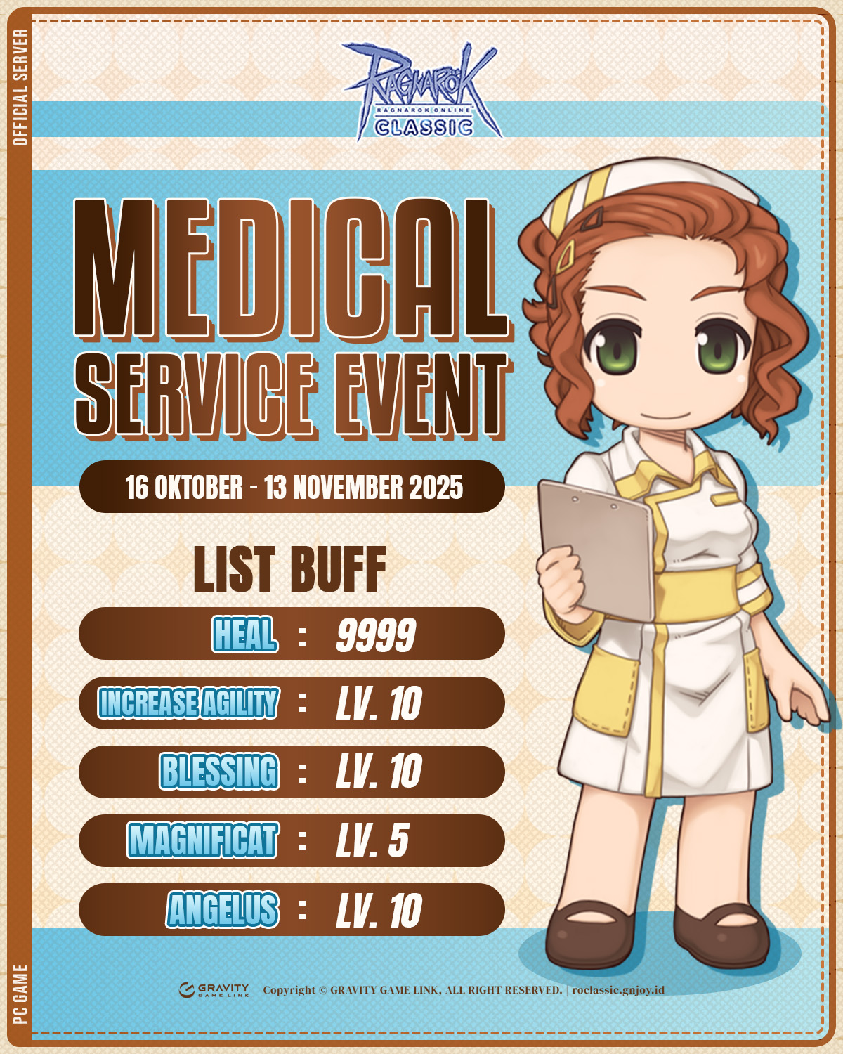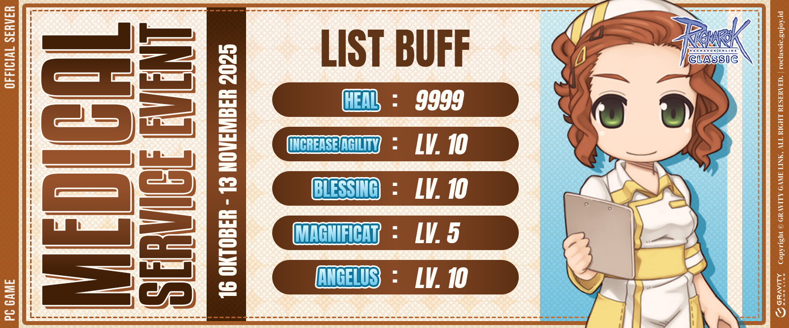 Bicaralah kepada NPC Medical Service untuk mendapatkan Buff berikut dengan biaya 5000 Zeny saja: