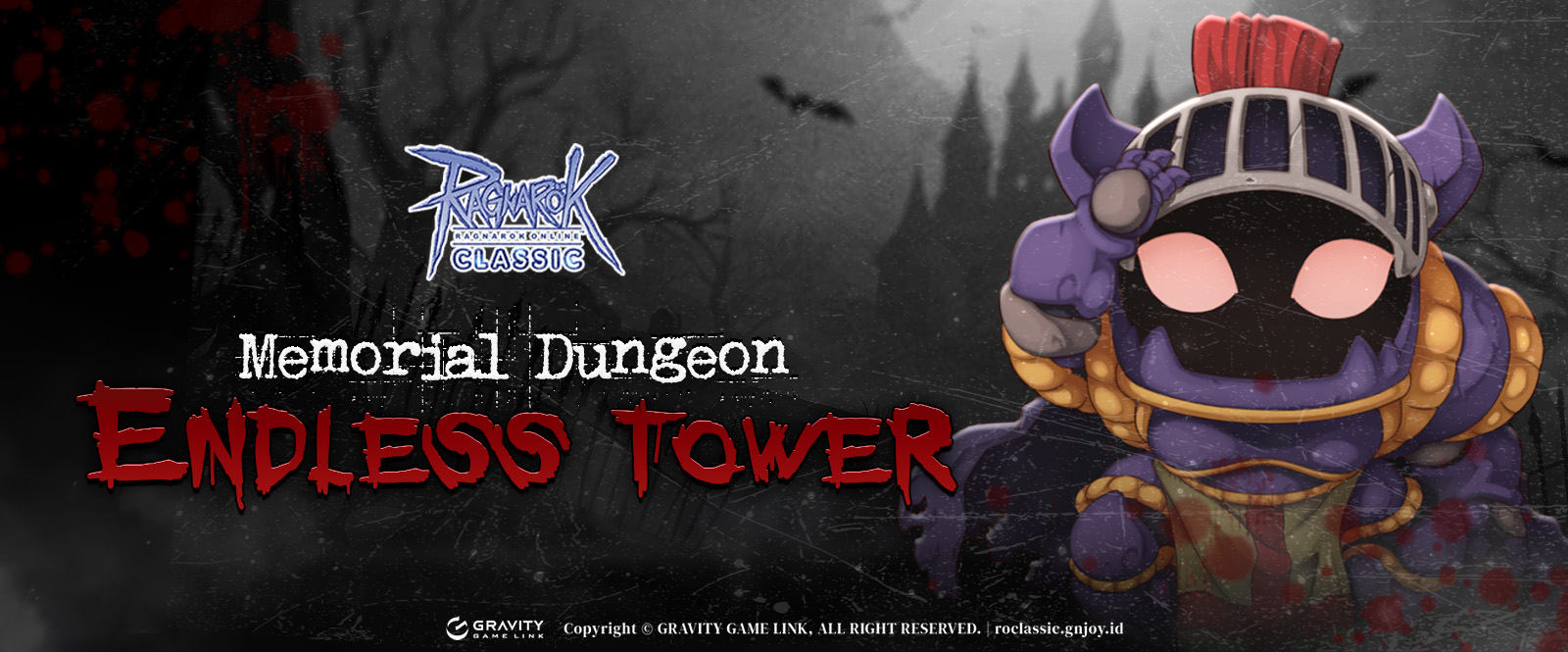 Tim Ragnarok Classic telah menyiapkan fitur baru yang dapat kamu nikmati pada Update kali ini, yaitu Endless Tower. Sebuah MEMORIAL DUNGEON terbaru yang bisa kamu jelajahi. Informasi selengkapnya dapat kamu lihat dibawah ini.