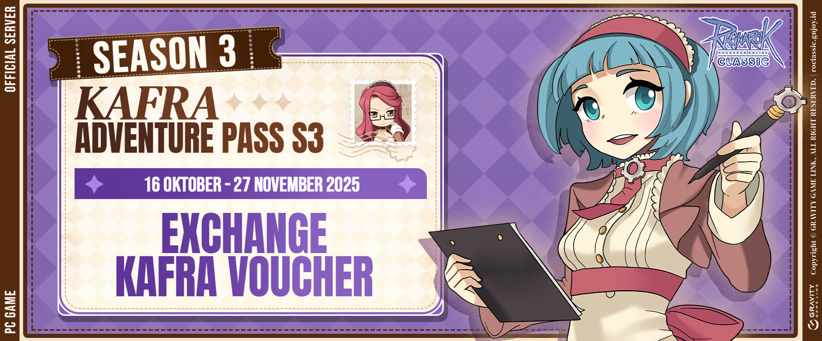 Untuk informasi lainnya mengenai Kafra Adventure Pass S3 silakan klik tombol berikut: