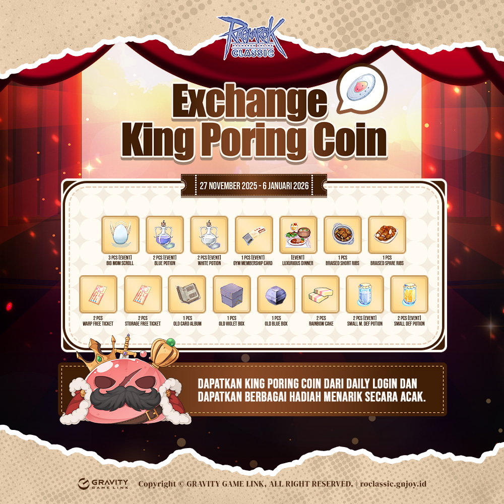 Berikut daftar lengkap item yang dapat kamu peroleh saat menukarkan 5 King Poring Coin: