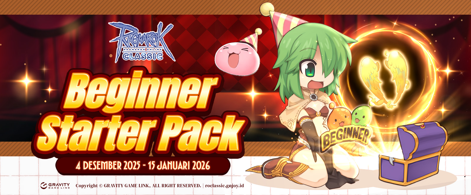 Saat dibuka akan mendapatkan [Event] Novice Potion, [Event] Novice Fly Wing, Novice Butterfly Wing, [Event] Increase Agility Lv.10 Scroll, [Event] Blessing Lv.10 Scroll, Level Up Box (30)