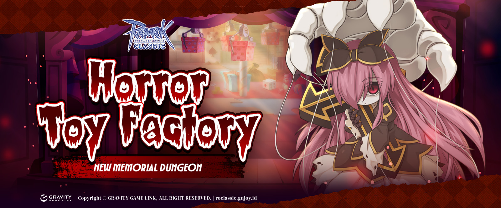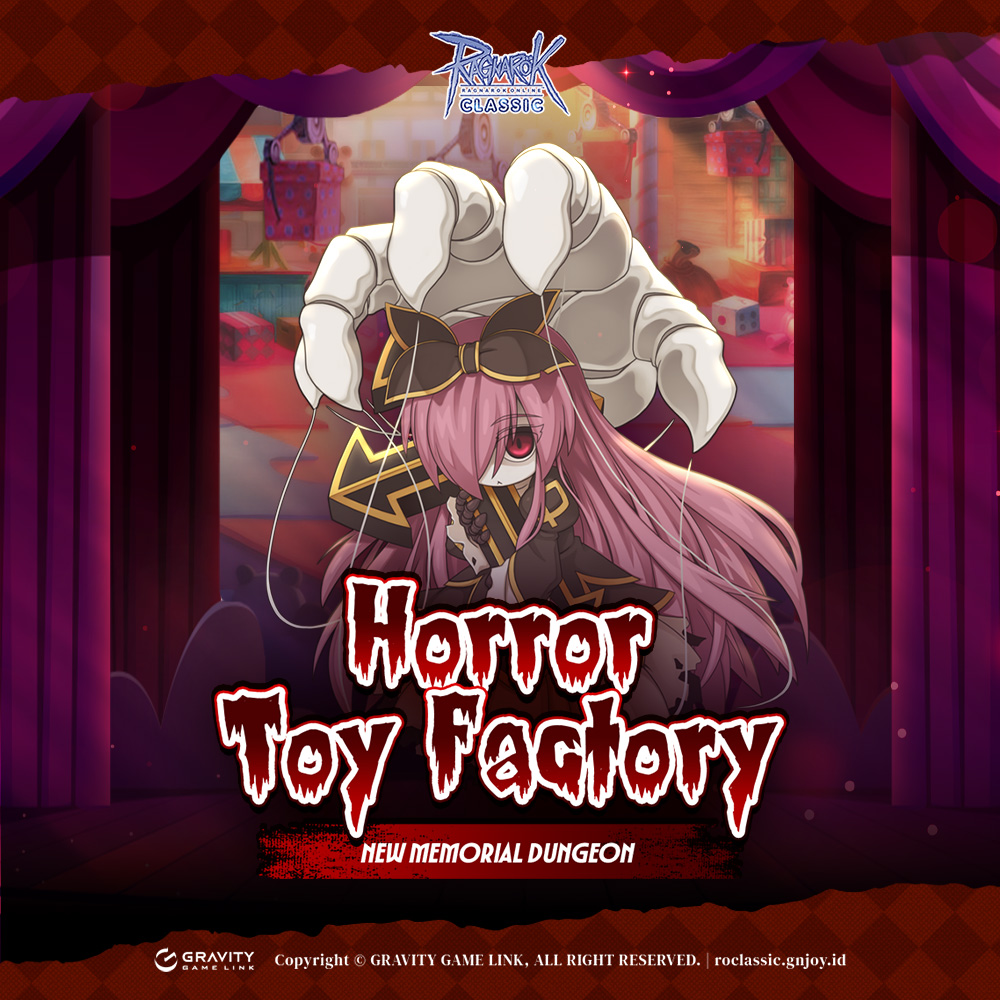 Tim Ragnarok Classic telah menyiapkan fitur baru yang dapat kamu nikmati pada Update Anniversary Ragnarok Classic, yaitu MEMORIAL DUNGEON HORROR TOY FACTORY. Informasi selengkapnya dapat kamu lihat dibawah ini.