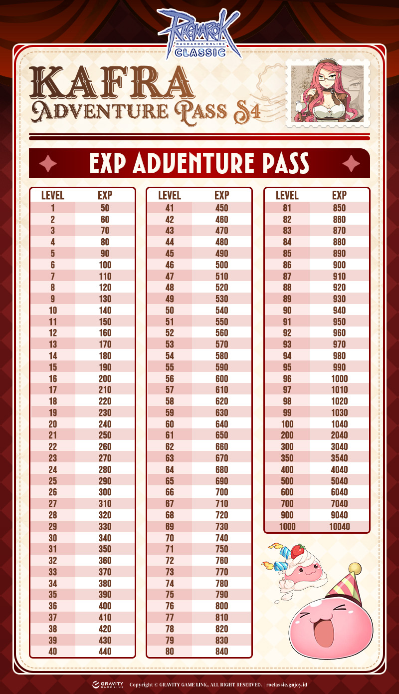 KAFRA ADVENTURE PASS SEASON 4 EXP DETAILS