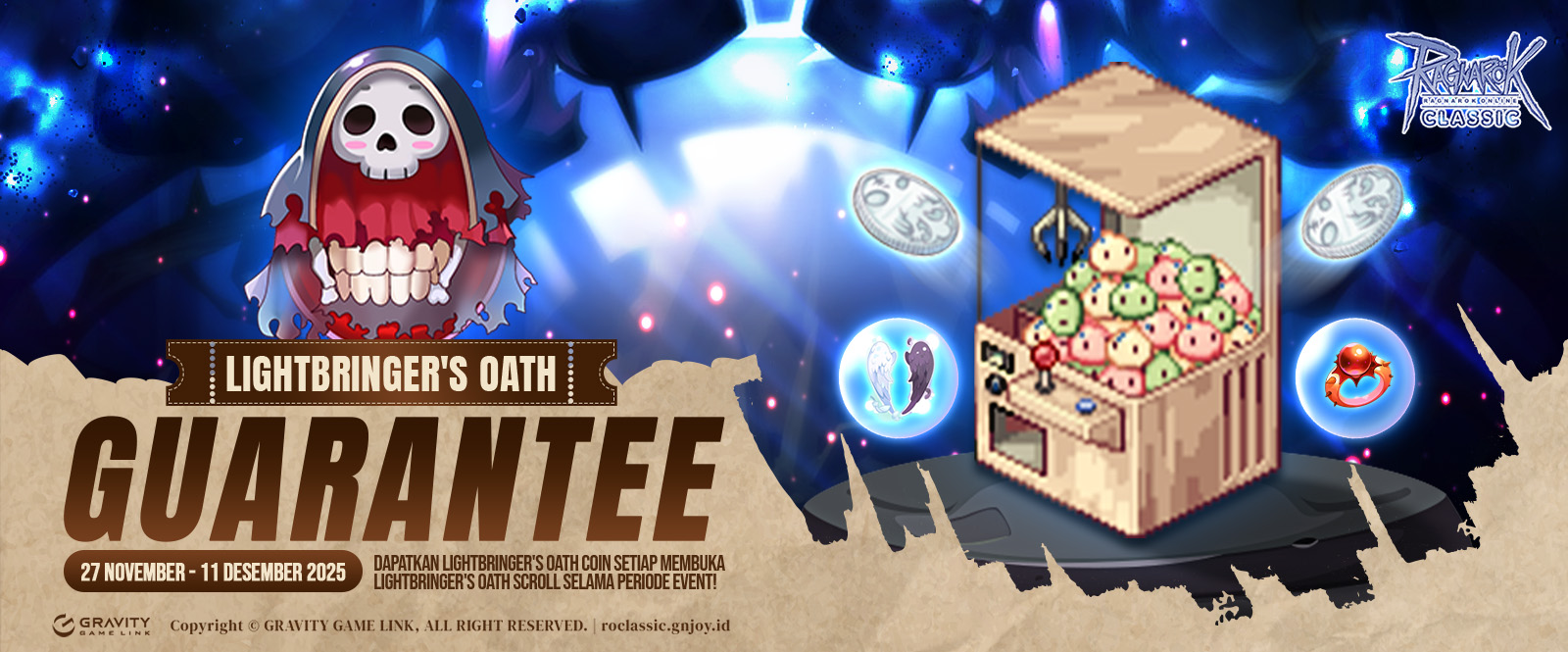 - Kumpulkan 100 buah Lightbringer's Oath Coin untuk melakukan gacha di NPC Exchange Machine yang berada di itemmall 15, 53.