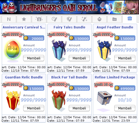- Kamu dapat melakukan pembelian melalui Cash Shop pada tab Account Limited seperti pada gambar berikut: