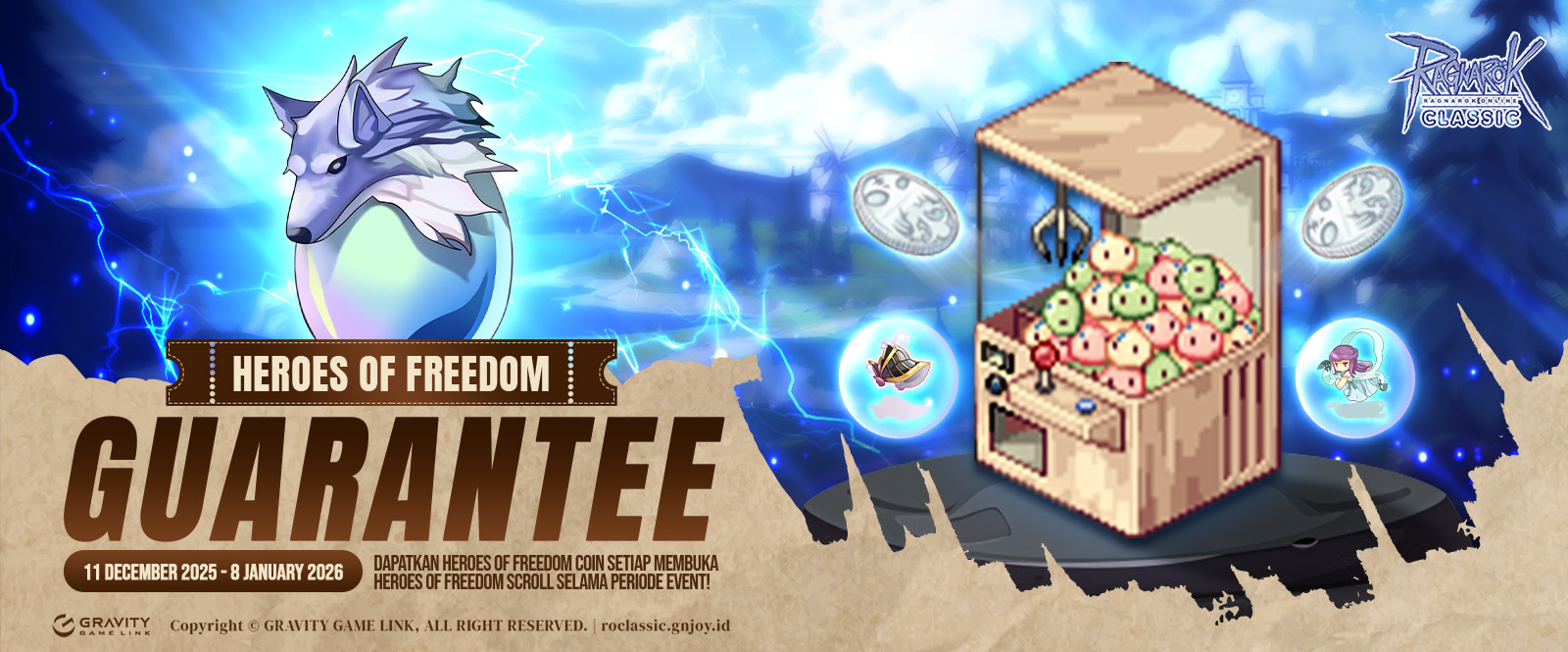 - Heroes of Freedom Coin tidak akan lagi kamu dapatkan setelah periode penjualan Heroes of Freedom Scroll berakhir (8 Januari 2026 Pk. 07.59)