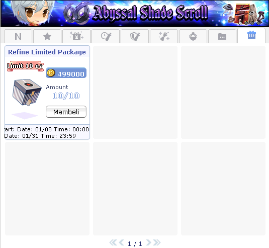 - 1 akun hanya bisa membeli maksimal 10 buah Refine Item Package selama periode event.
