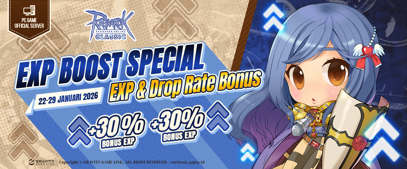 Hari yang ditunggu tunggu petualang telah tiba!! Tim Ragnarok Classic mengadakan EXP Boost Special Event agar leveling semakin lancar~