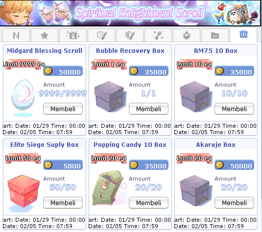 - Kamu dapat melakukan pembelian melalui Cash Shop pada tab Account Limited seperti pada gambar berikut: