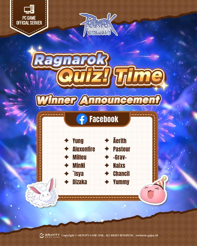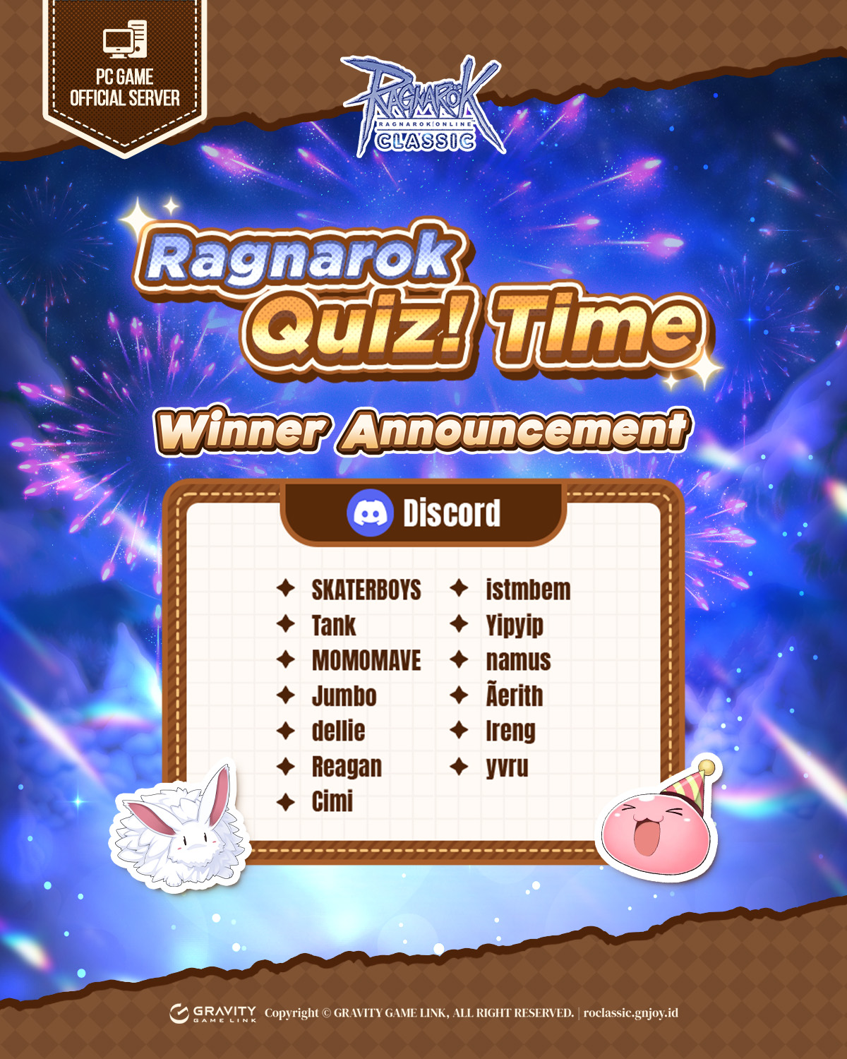 WINNER ANNOUNCEMENT RAGNAROK QUIZ !