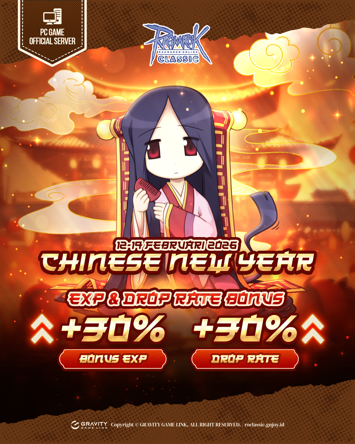 Hari yang ditunggu tunggu petualang telah tiba!! Untuk merayakan Tahun Baru Imlek 20026, Tim Ragnarok Classic mengadakan EXP Boost Special Event agar leveling semakin lancar~