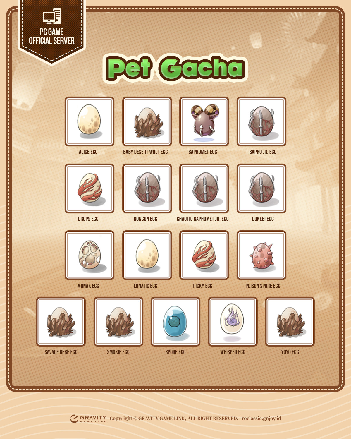 Tim Ragnarok Classic kali ini menghadirkan fitur Pet Catcher, di mana kamu bisa mendapatkan berbagai Pet lucu yang memberikan tambahan stats!