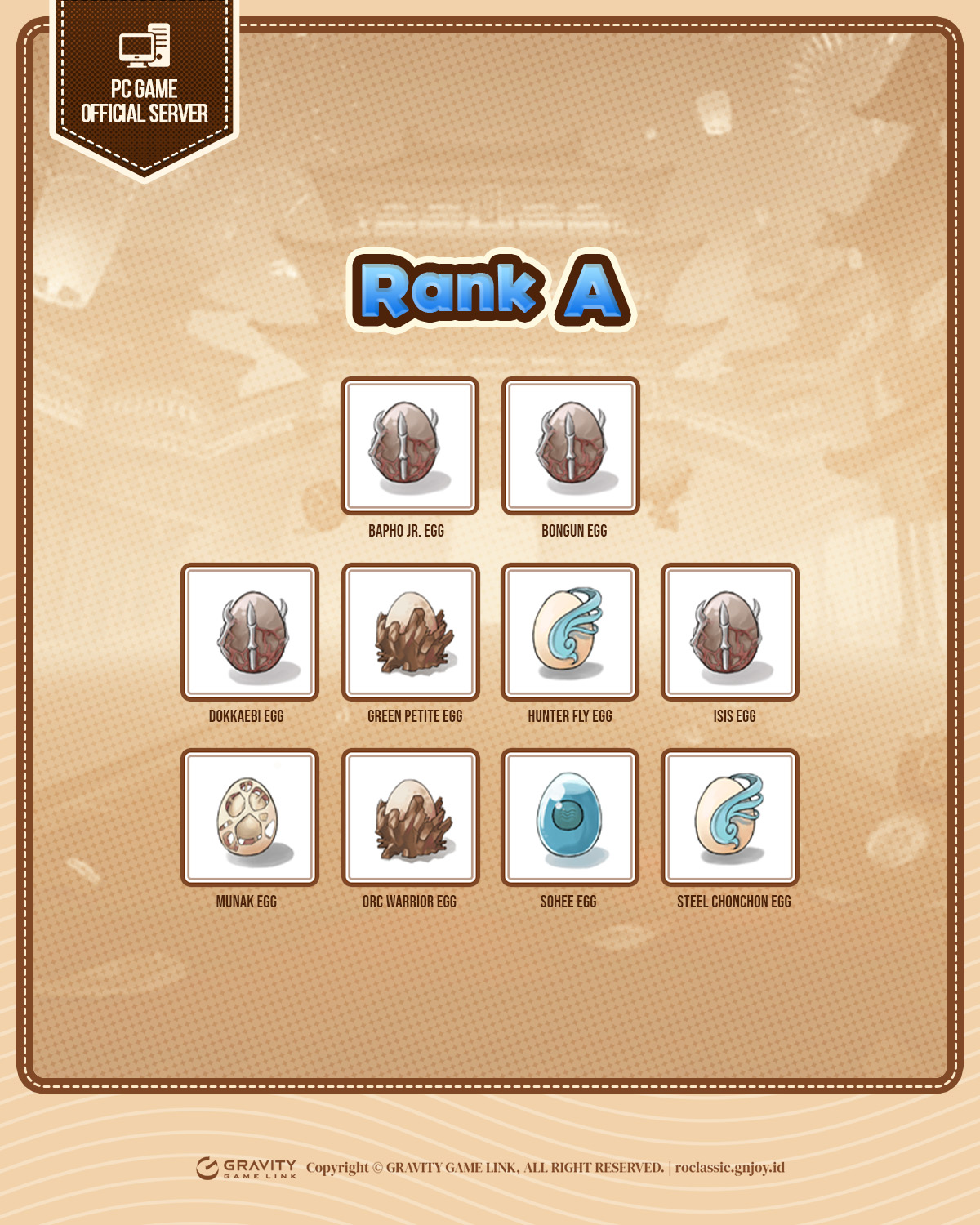 Untuk mendapatkan telur pet Rank A, dibutuhkan 4 telur pet Rank B.