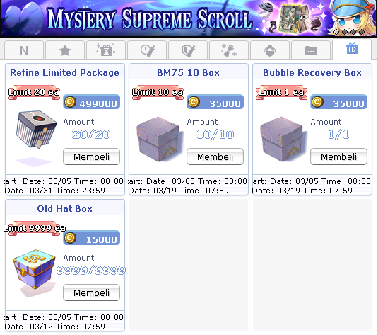 - 1 akun hanya bisa membeli maksimal 10 buah Refine Item Package selama periode event.