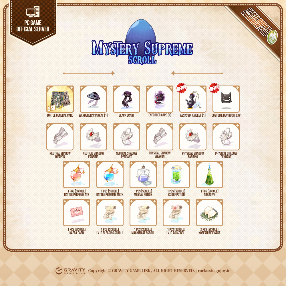 - Untuk informasi lebih lanjut mengenai Gacha Guarantee: Mystery Supreme Scroll, silakan kunjungi link berikut:
