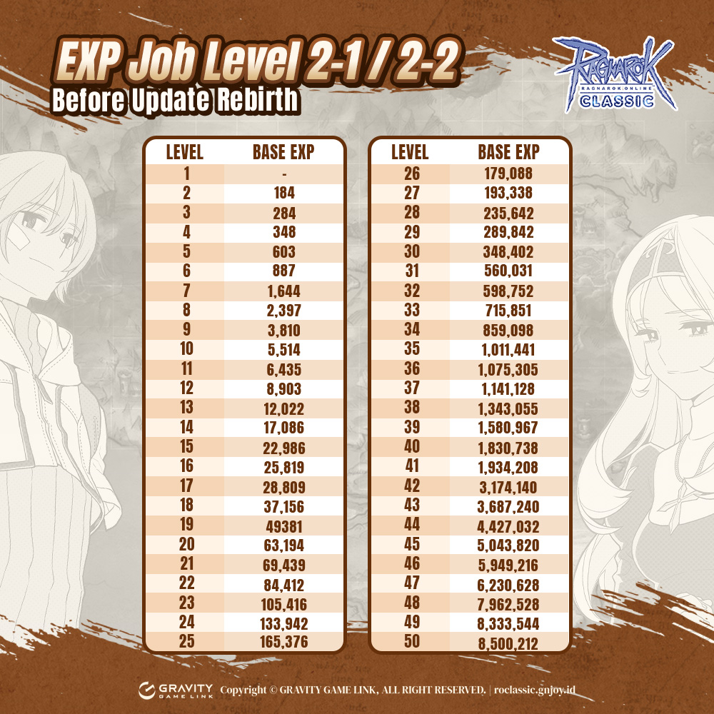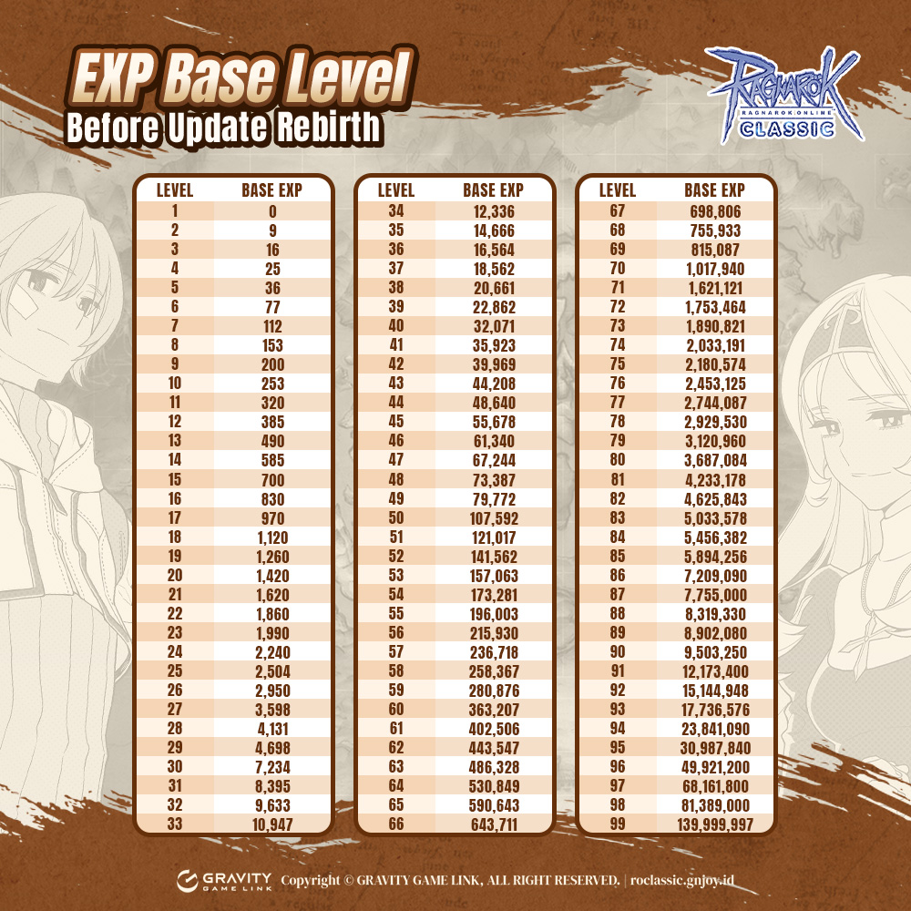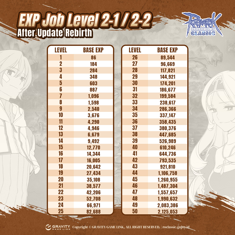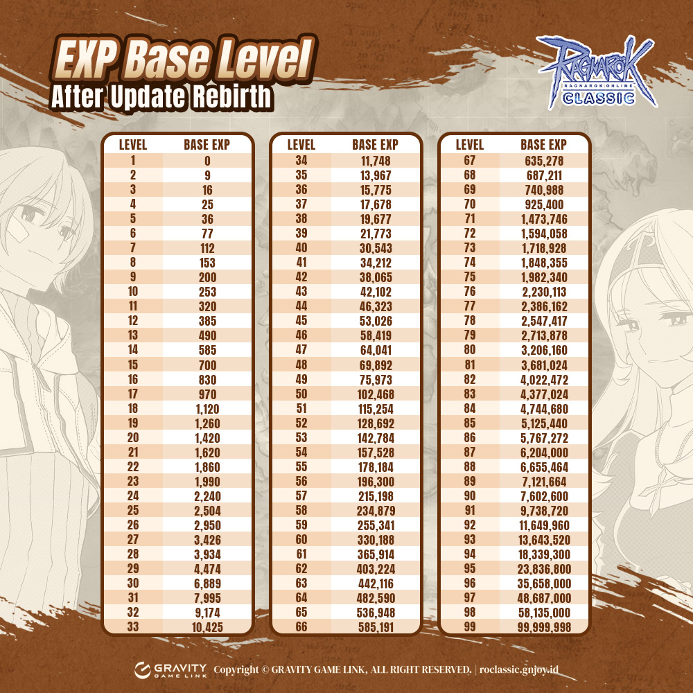 Tim Ragnarok Classic melakukan perubahan terhadap Table Experience Base Level dan Job Level. Tentu saja ini untuk mempermudah kamu untuk Rebirth !!