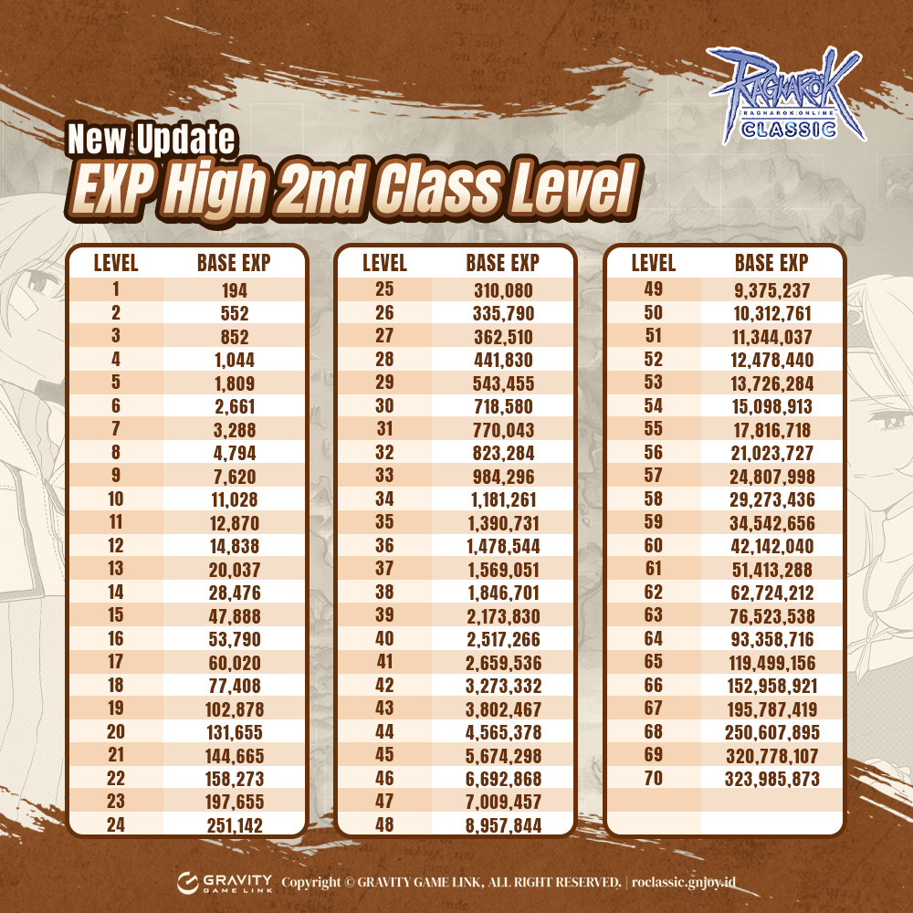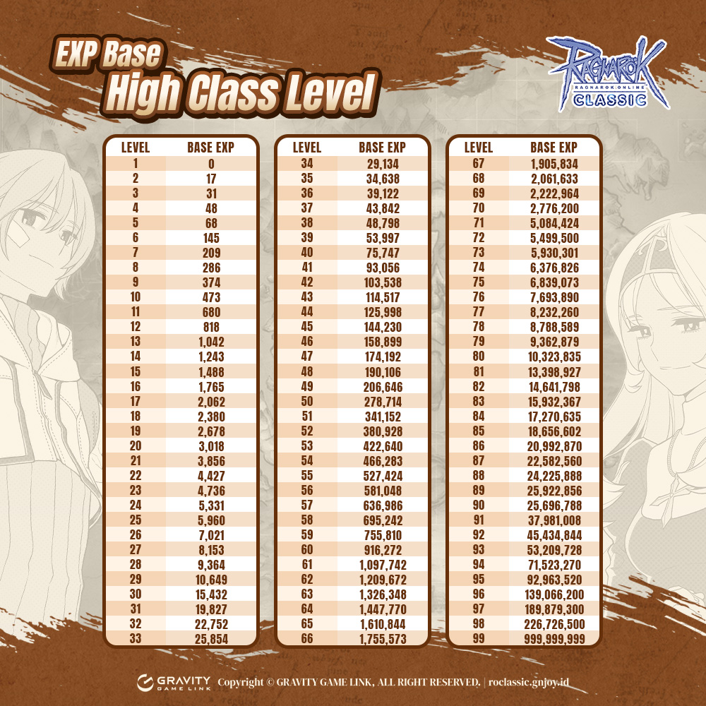 TABEL BASE EXP HIGH CLASS