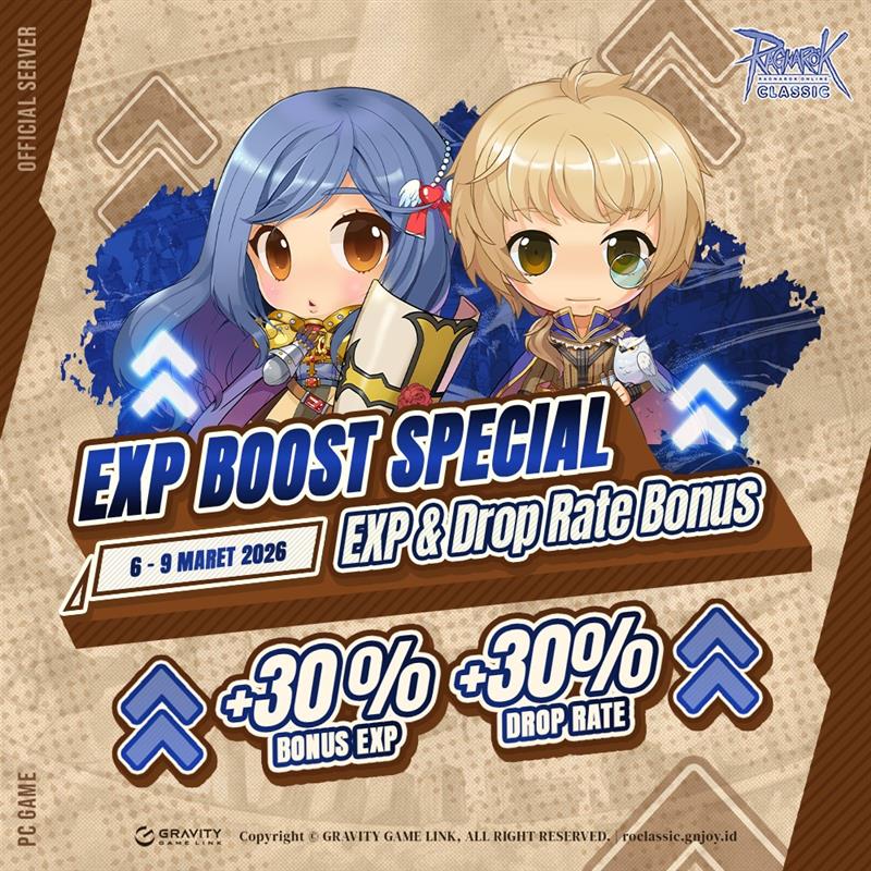Hari yang ditunggu tunggu petualang telah tiba!! Tim Ragnarok Classic mengadakan EXP Boost Special Event agar leveling semakin lancar~