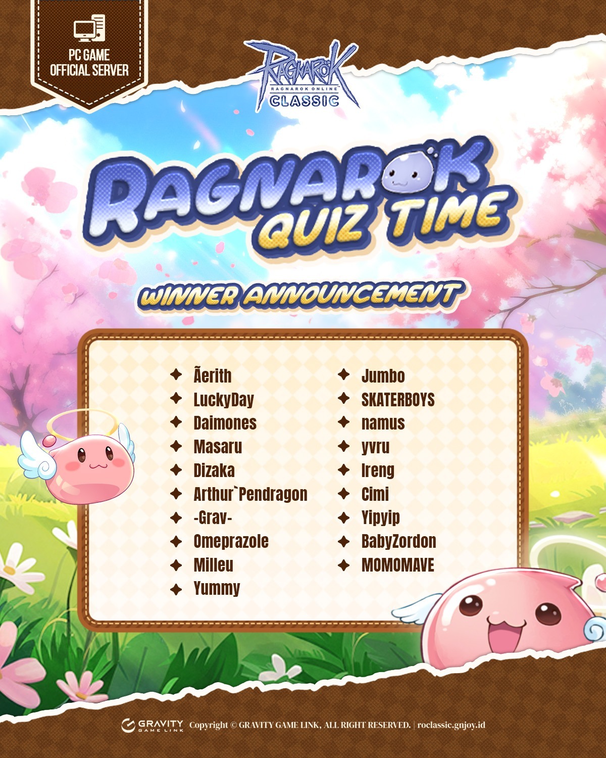 WINNER ANNOUNCEMENT RAGNAROK QUIZ !
