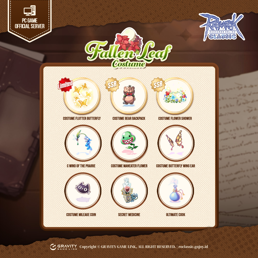 Berikut daftar Costume yang bisa kamu dapatkan dari Fallen Leaf Costume Scroll: